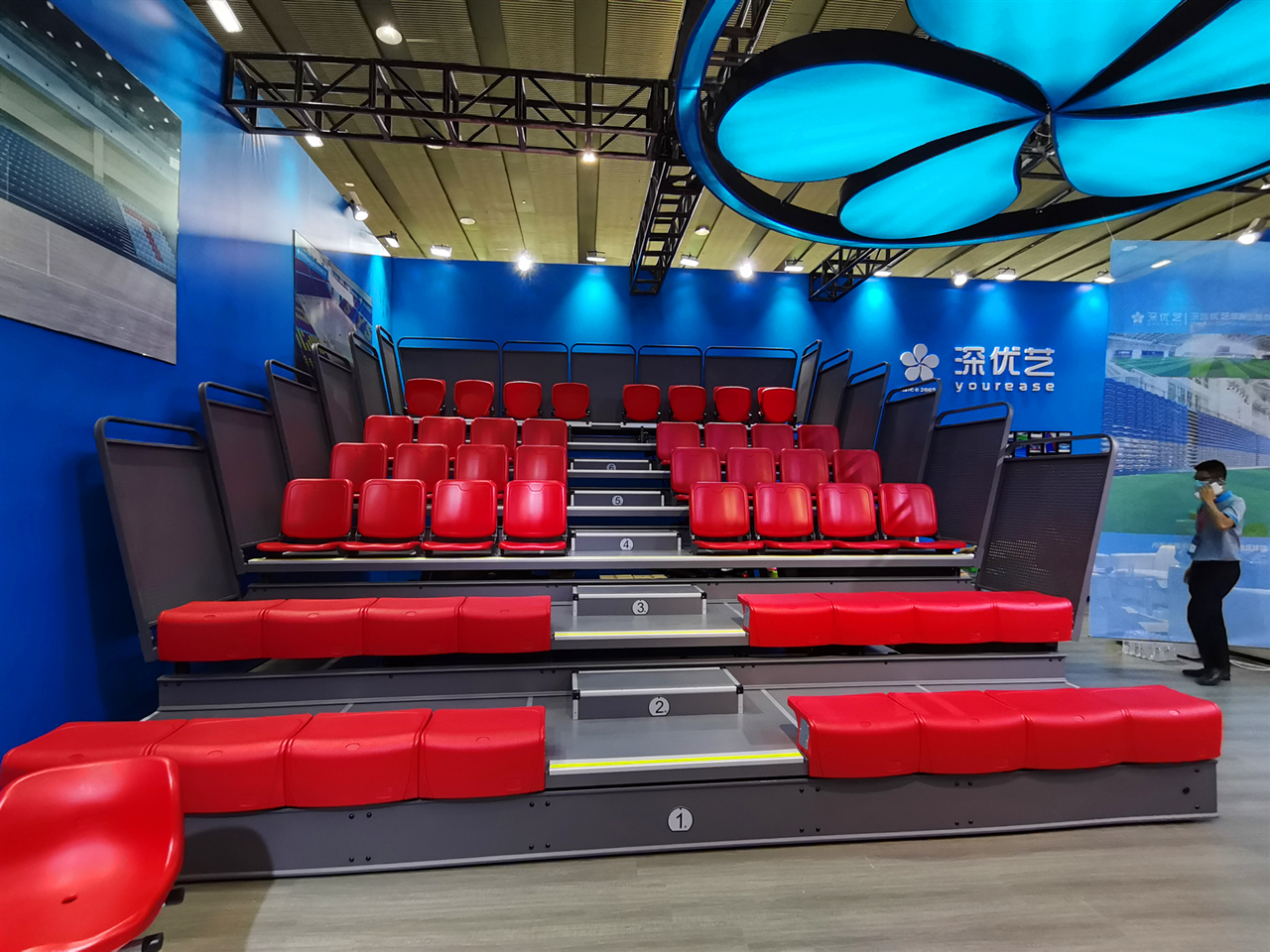 優(yōu)藝體育現(xiàn)場(chǎng)展示的不同類型座椅的活動(dòng)看臺(tái)解決方案大獲好評(píng)